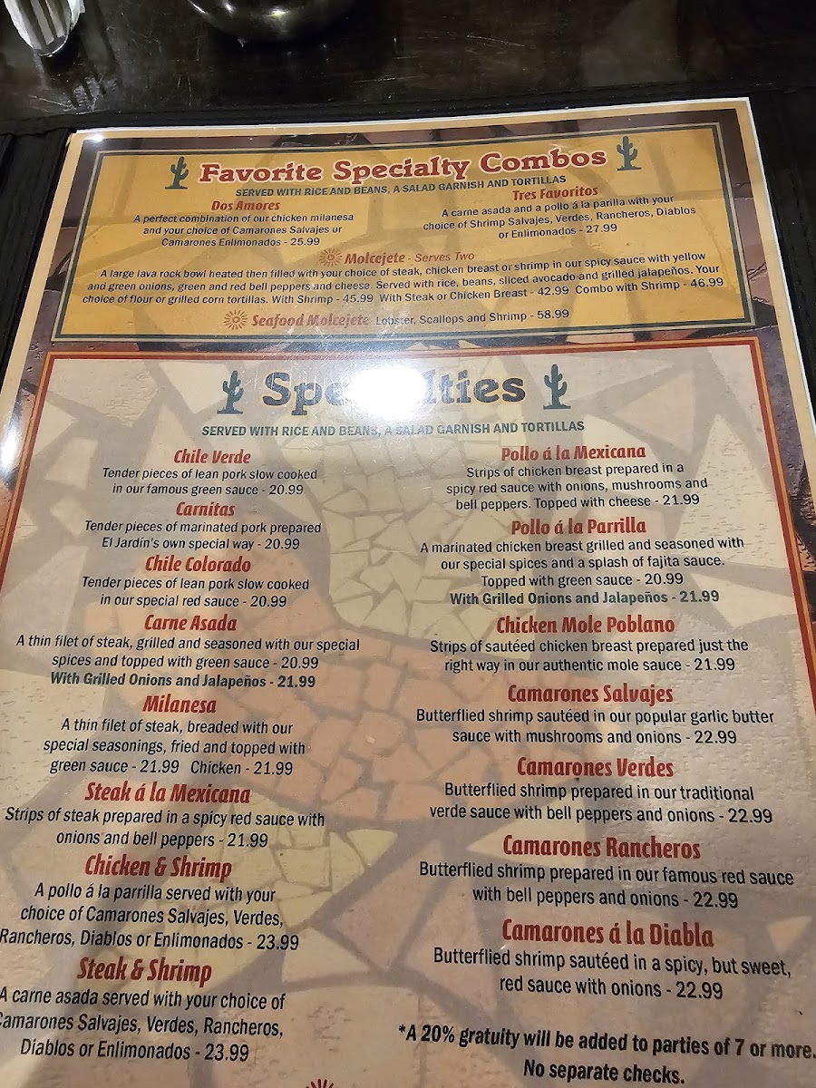 El Jardín Menu